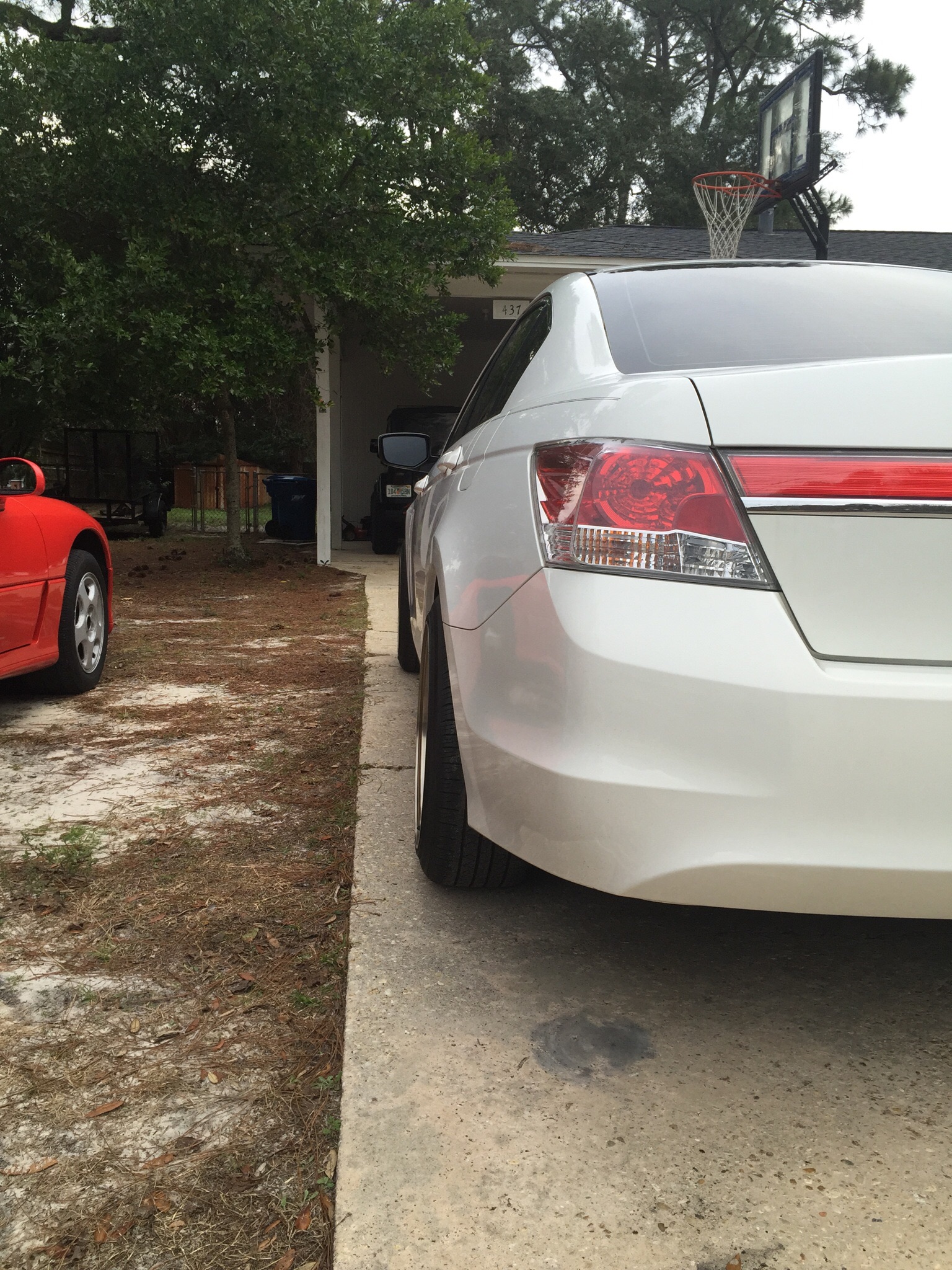 Well as of today I still need to put my coilovers on. As for other things I had bought an STI lip not to long ago and I thought it was going to fit the accord model but it turns out it's not quite angled correctly so there's that. Also Probably going to do exhaust and air intake over the summer.I don't know much on retro-fitting so probably do a bunch a research and video watching till I can get anywhere near headlights. But yeah Other plans include wrapping the roof in black/ or throwing a bike rack on top along with darkening the tail lights. Debating still on making my ambers clear or not. Also I removed my mud-flaps I think it looks clean that way but they left gouges in the paint (which show a clear outline of the flap) from rubbing or whatever so I need to try to fix that somehow otherwise re-paint them. Waiting for summer to arrive to try Plasti-dipping then chrome trim once again, for some reason it's very difficult masking is a pain + cold weather doesn't help whatsoever.