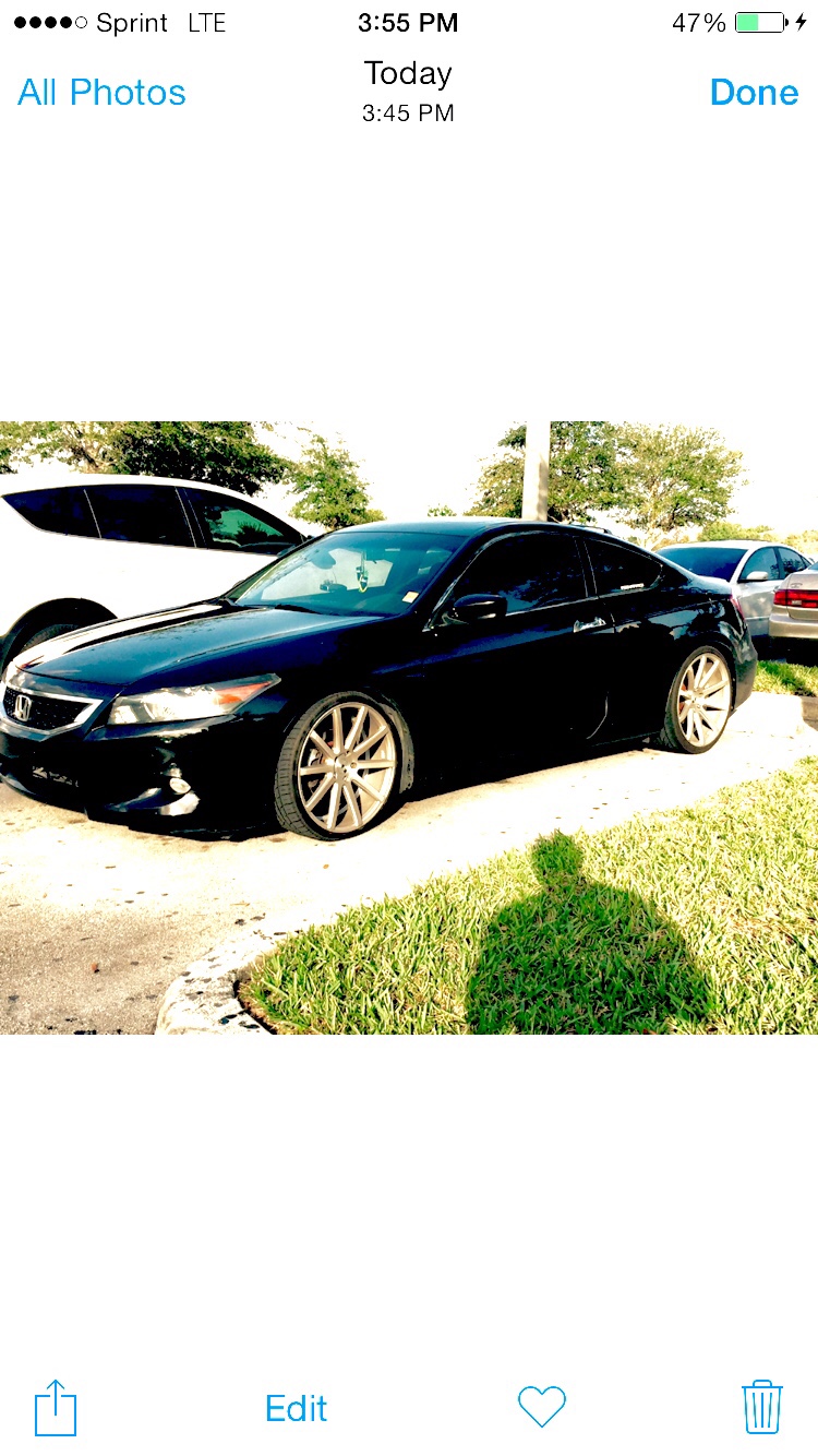 Hey everyone, I'm Warren from South Florida. I own an 09 accord coupe 6-6. I have a few mods nothing too crazy which include: XO Tokyo wheels 20x8.5 F and 20x10 R on Nitto NT555 Tires, Takeda Short Ram Air Intake, Magnaflow Exhaust, H&R Coilovers, 55w 5000k HID low beams, LED interior lights, and an Acura TL shift knob. I'm also on Instagram as @dubb_squared