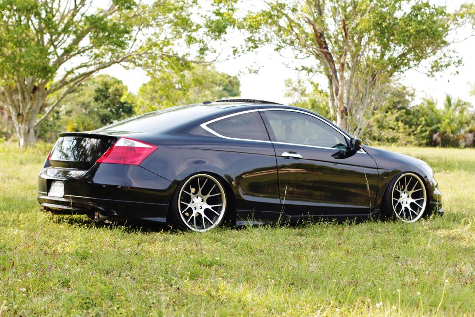 09 Cbp Accord Coupe 6-6 // Full exhaust // Takeda short ram intake // Custom Headlights w/dual halos & rgb demon eyes // BC coilovers // 20x10.5 +25 front/+5 rear Avant Garde F421 w/candy brushed turquoise faces & polished lips & hardware // Supgrade purple & chrome lug nuts // Jpower rear camber kit // TRS 6k headlights