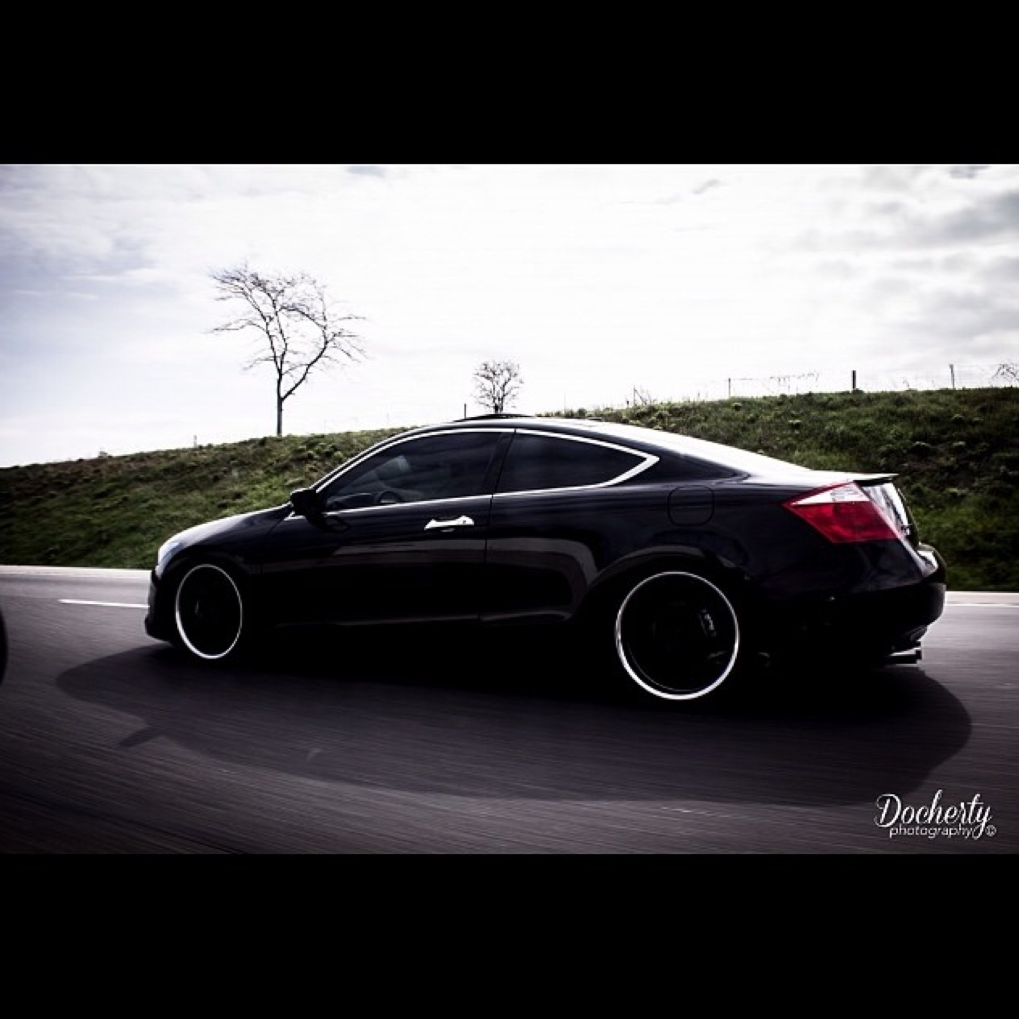 I thought I would introduce myself and my ride. The first car I bought myself was a 2004 Accord LX 4-cyl Sedan. It was a great car and got me through collage. I put a huge sound system in and threw some 20s on it. Looked good but I was wanting something faster. So I traded it in and bought my 2008 EX-L 6-6 Coupe in February of 2012. I laid low with modifications for the first year, but threw on the 20s I had on my previous Accord. Here she is when I picked her up from the dealership.