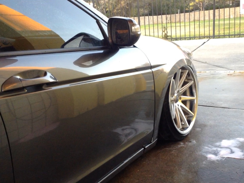 Condition: Brand New driver front and rear driver side wheels. Passenger side front and rear are only 2 months old have minimal scratching out the outside of the lips from the tire well but overall this is an amazing set of wheels. The concave looks AMAZING!!! Very good deal too.