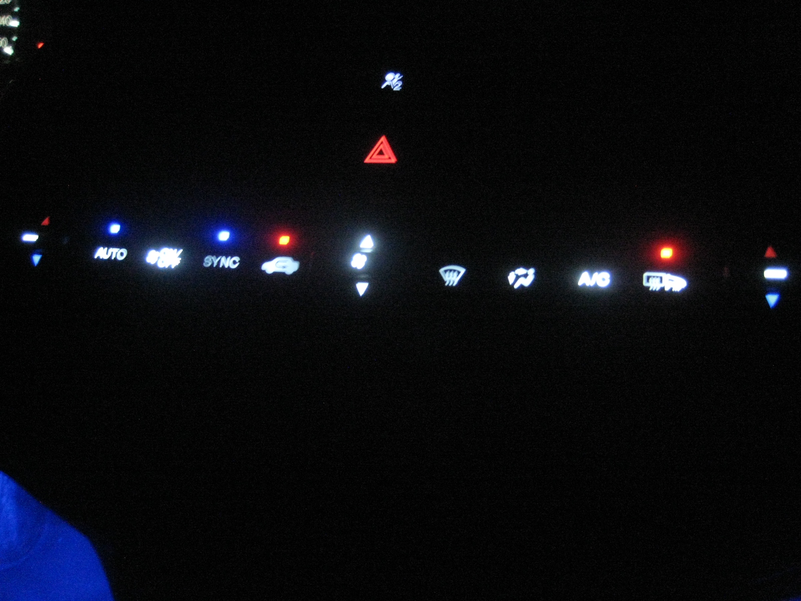 just finished upgrading the prior bulbs / LEDs from the awful ugly light green | orange and regular green to white | red and blue. Obviously some pics show as blue for the white illumination but that is more than likely due to the camera I used to snap the pics. With regards to the ac climate control, I have to get rid of some of the hotspots the show more and are displayed via the on/off button | fan decrease & increase toggle | A/C button. If anything I am going to use aluminum tin foil to set it down inside the controls and cross my fingers that it evens out the distribution of the white light output for all the buttons