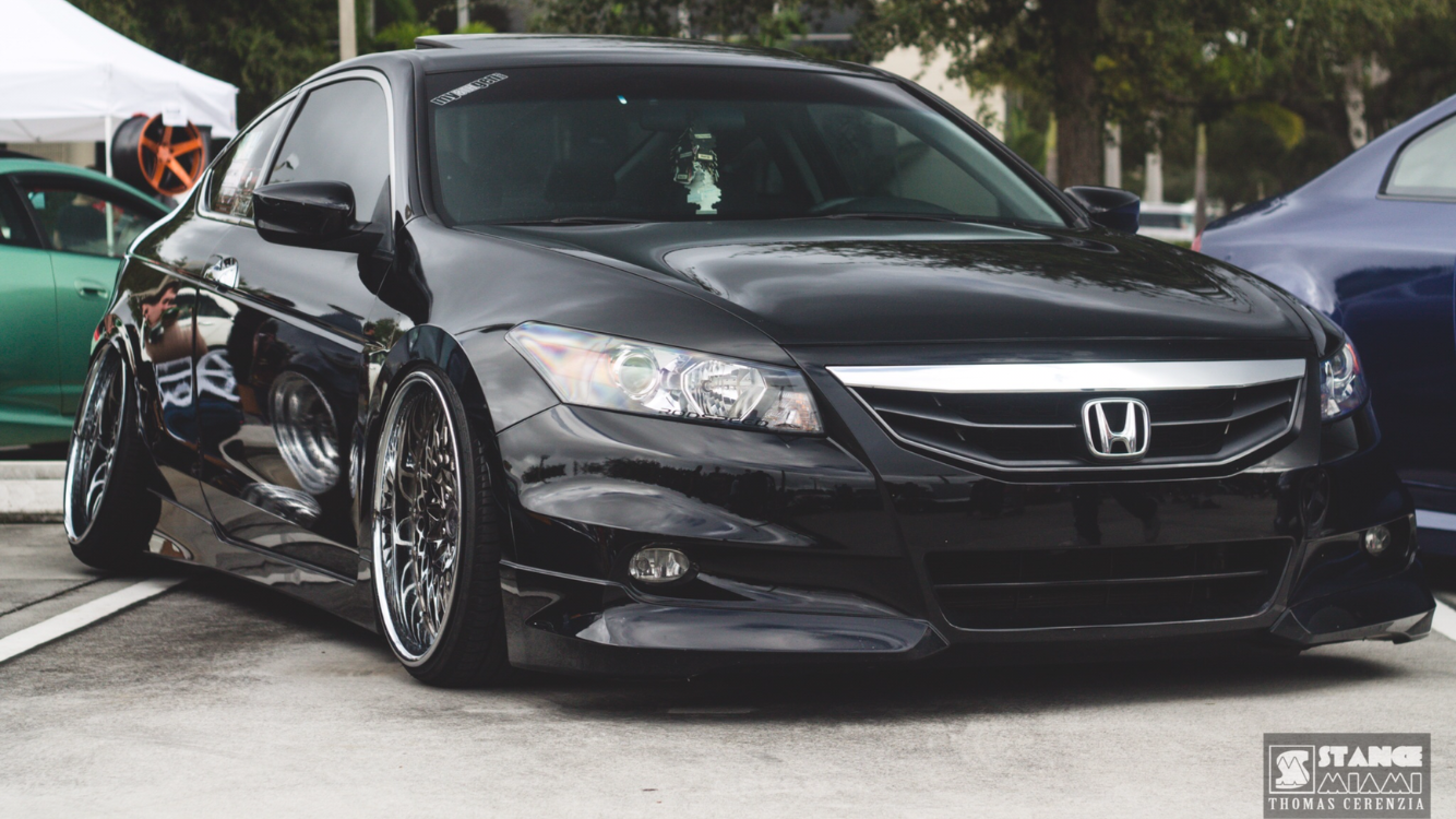 09 Cbp Accord Coupe 6-6 // Full exhaust // Takeda short ram intake // Custom Headlights w/dual halos & rgb demon eyes // BC coilovers // 20x10.5 +25 front/+5 rear Avant Garde F421 w/candy brushed turquoise faces & polished lips & hardware // Supgrade purple & chrome lug nuts // Jpower rear camber kit // TRS 6k headlights