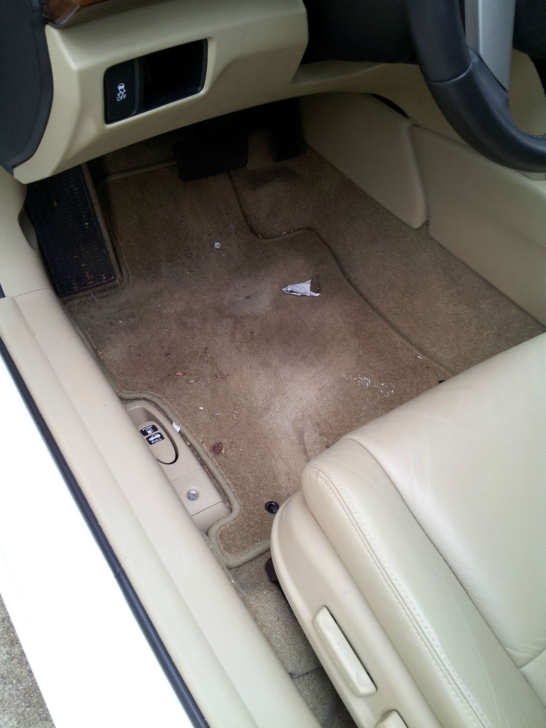 Driver's floorboard with stock mats.
