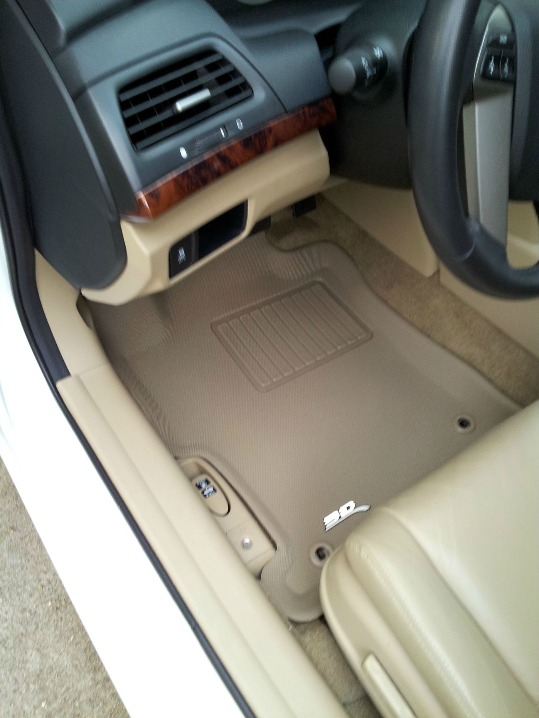 After that I did some minor interior things. Went for the full woodgrain interior out of the Crosstour. It's a darker grain than the factory Accord woodgrain, and I think it looks great in the ivory interior. I also upgraded the doors' armrests from cloth to the OEM leather armrests. Also picked up a set of Aries 3D floorliners. I liked the aesthetic to them much better than the WeatherTechs. Finally, I installed the Crosstour leather shift knob. Pretty minor upgrade (and not pictured here) but it feels very nice while driving.