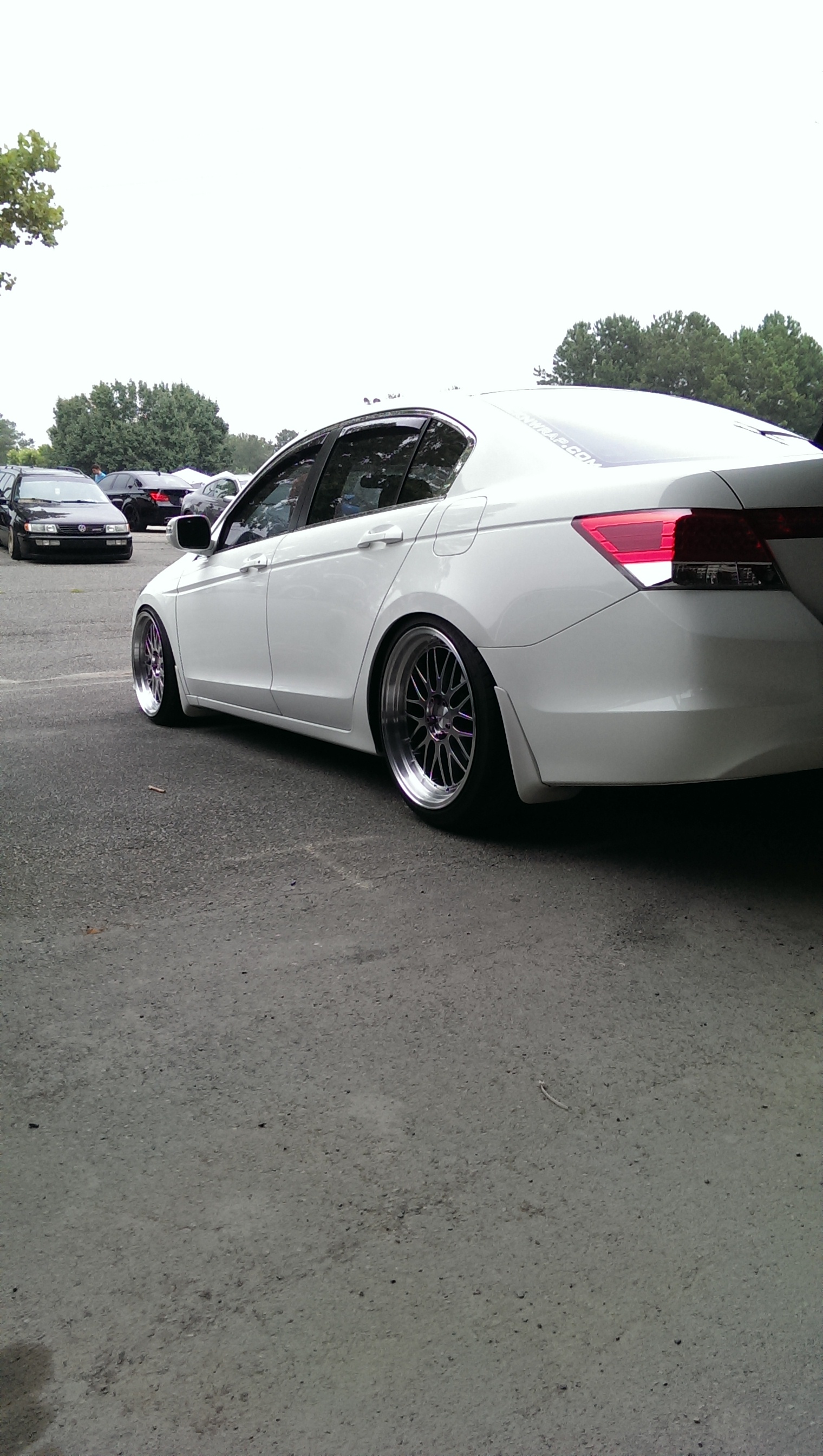 I've unfortunately lost the pictures right after dropping the car, but not long after this I bought some coilovers from a member here (thanks i4indodarknight!). I also had picked up some WeatherTech window visors.