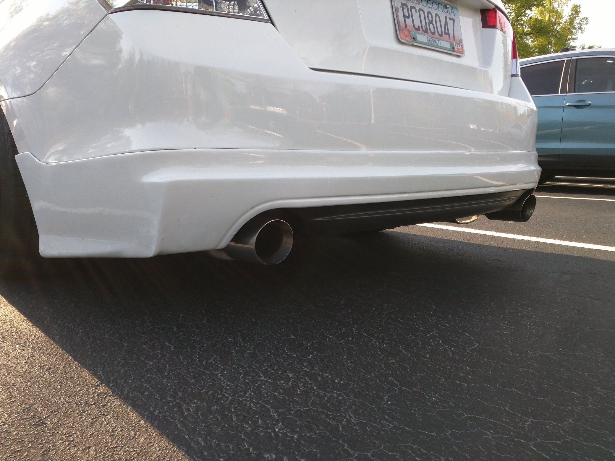 Purchased a Magnaflow Catback from a V6 coupe from another member here. It took a little modifying to get it on and looking right, but I'm pretty happy with how it turned out.