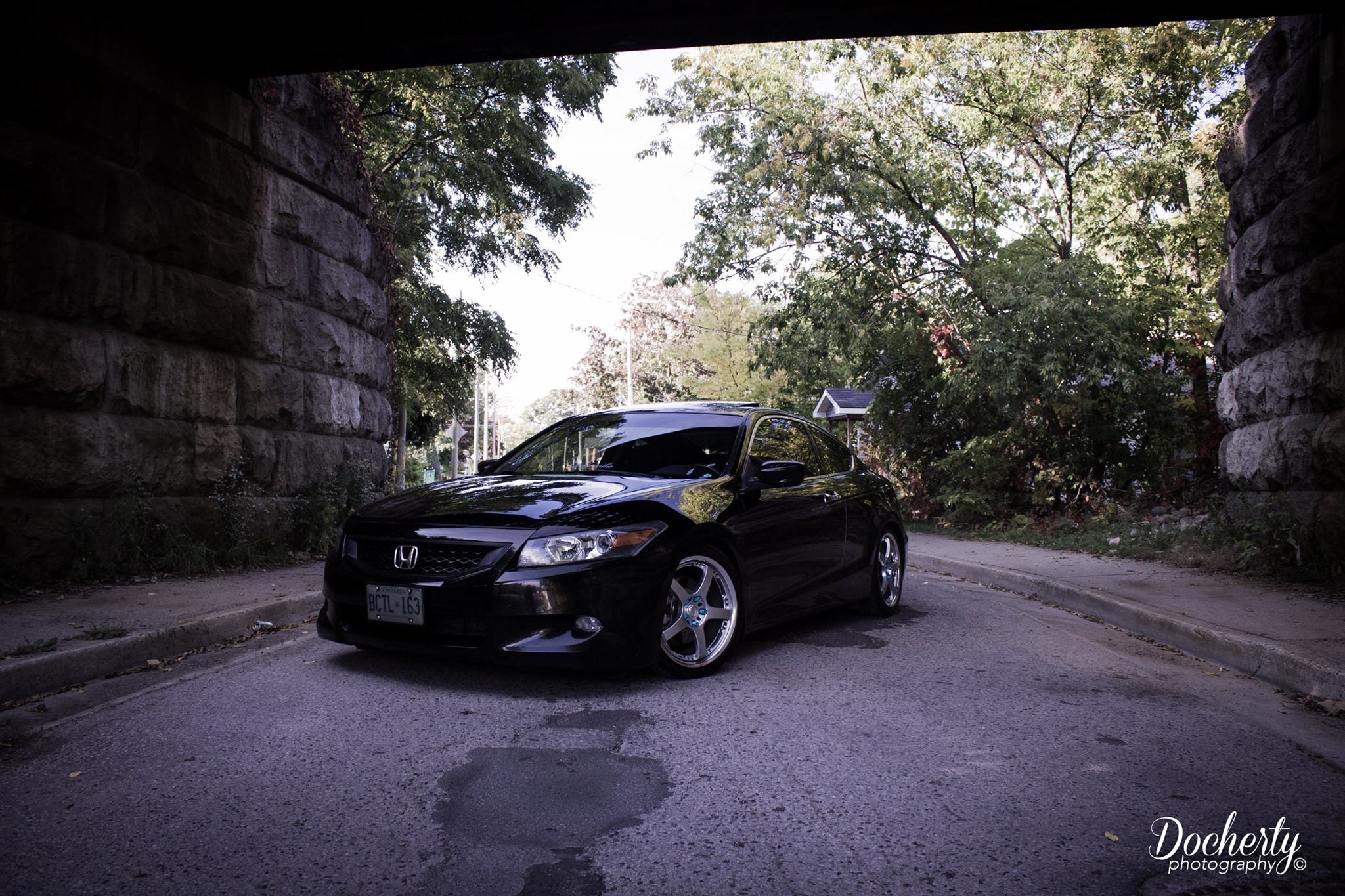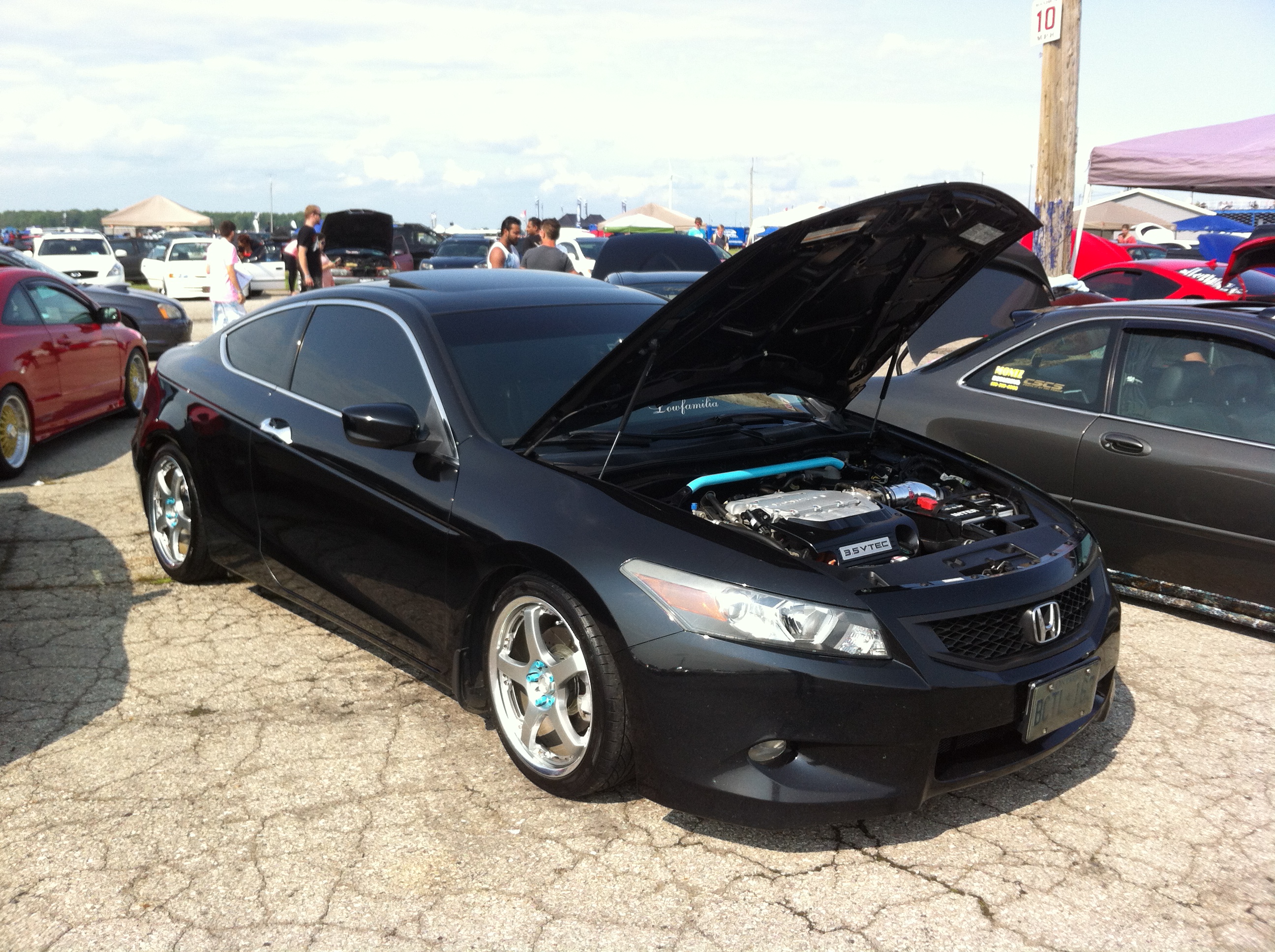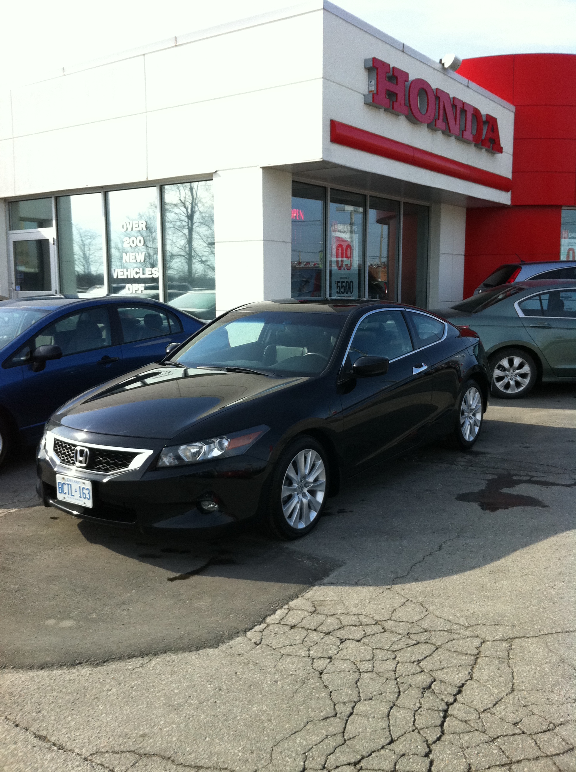 I thought I would introduce myself and my ride. The first car I bought myself was a 2004 Accord LX 4-cyl Sedan. It was a great car and got me through collage. I put a huge sound system in and threw some 20s on it. Looked good but I was wanting something faster. So I traded it in and bought my 2008 EX-L 6-6 Coupe in February of 2012. I laid low with modifications for the first year, but threw on the 20s I had on my previous Accord. Here she is when I picked her up from the dealership.